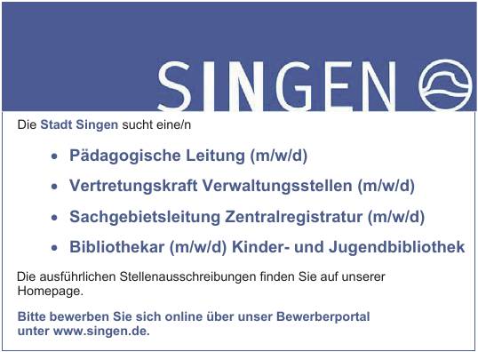 Bitte bewerben Sie sich online über unser Bewerberportal unter www.singen.de.