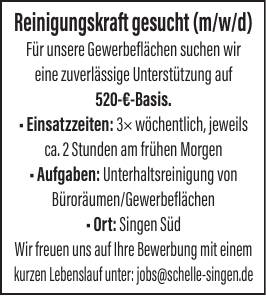 Für unsere Gewerbeflächen suchen wir eine zuverlässige Unterstützung auf 520-€-Basis.